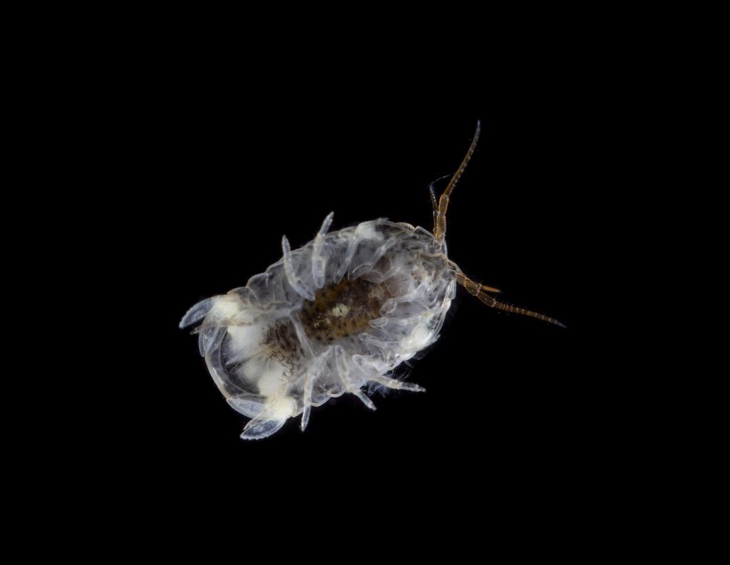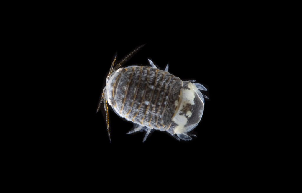 Besides conglobation (rolling into a ball) and camouflage, S. serratum employs two other anti-predator mechanisms. It is a good and fast swimmer, which surely also played a role in its global-wide distribution. They swim with ventral side up, due to their high center of gravity. These isopods also aggregate in large groups with conspecifics which reduces the risk of an individual becoming prey.